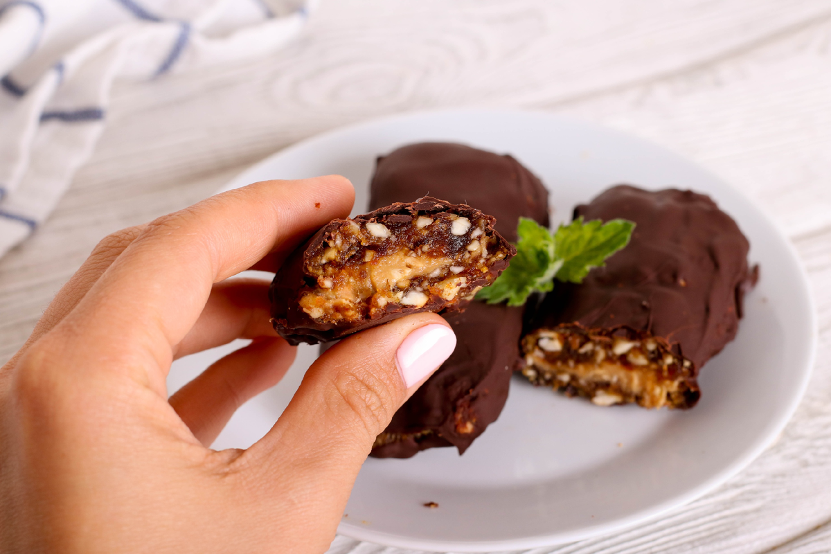 Ингредиенты: 90 г арахиса, 25 г сухого молока, 140 г фиников, 50 г шоколада.