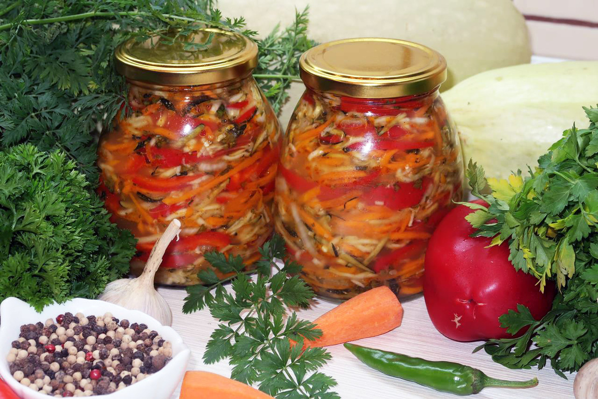 Хранить такие кабачки лучше в темном месте, вдали от тепла. Теперь заготовка готова, и можно наслаждаться кабачками по-корейски всю зиму!