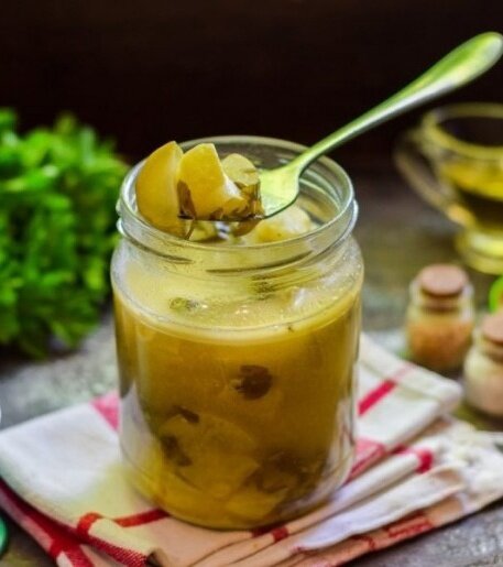 Переложите кабачки в стерильные банки, залив их образовавшейся жидкостью. Не забудьте о стерилизации заготовки в течение 20 минут, предварительно устелив дно кастрюли тканью.