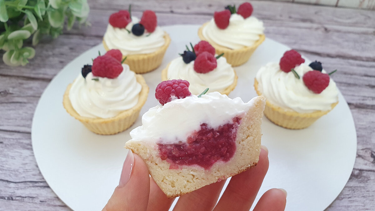 Приглашаем вас попробовать сделать невероятные корзиночки с легким творожно-сливочным кремом и малиновым конфитюром, которые отлично подойдут для легкого десерта.