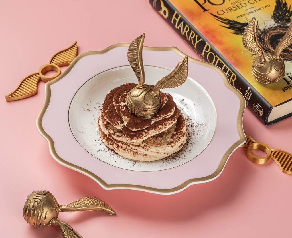 Для любителей сладкого в меню представлено восхитительное фигурное пирожное «Золотой снитч», приготовленное на основе классического тирамису. Этот десерт станет идеальным завершением волшебного ужина.