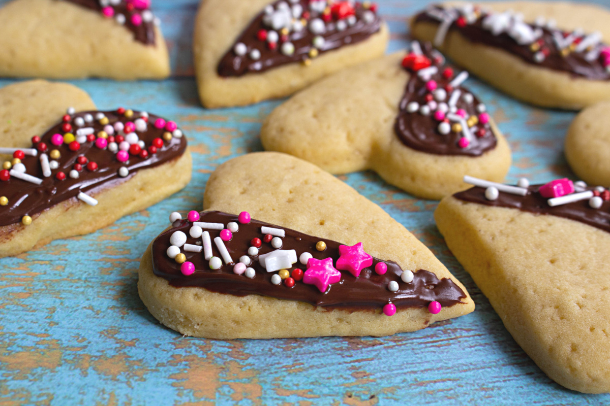 После выпечки дайте печеньям немного остыть. В это время растопите шоколад. Обмакивайте половинки сердечек в растопленный шоколад, затем посыпайте кондитерской посыпкой по своему вкусу. И вот, сладкие сердечки готовы порадовать вас и ваших близких!