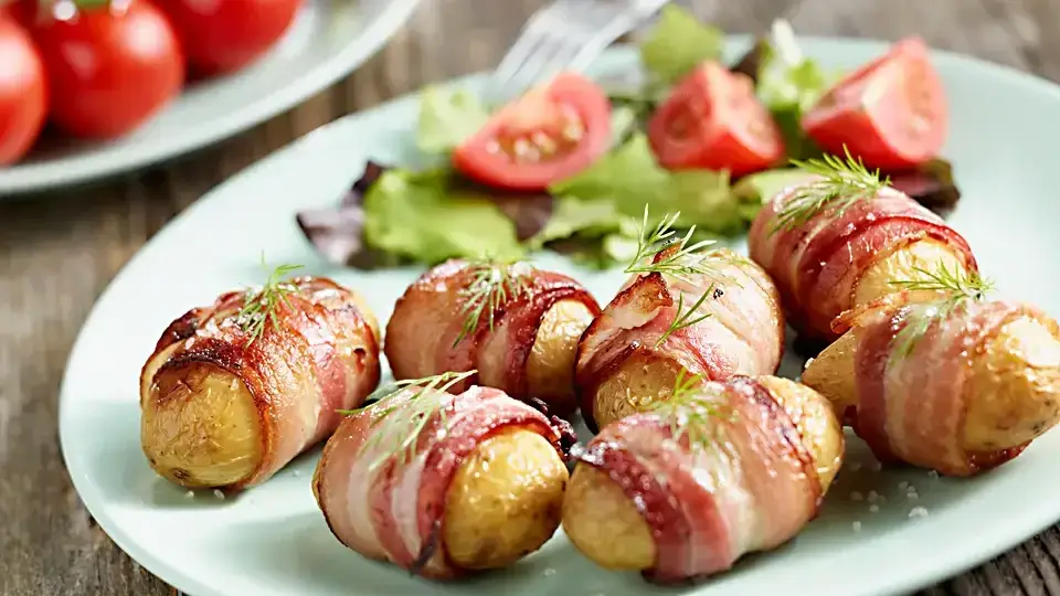 Запеченный картофель — это классика, знакомая многим. Вспомните, как приятно было наслаждаться печеной картошкой, приготовленной на костре, засыпанной зоей. Современная кухня предлагает интересные варианты этого простого блюда. Сегодня представляем вам рецепт картофеля, запеченного целиком в беконе с добавлением аромата розмарина, который перенесет вас в те чудесные времена.