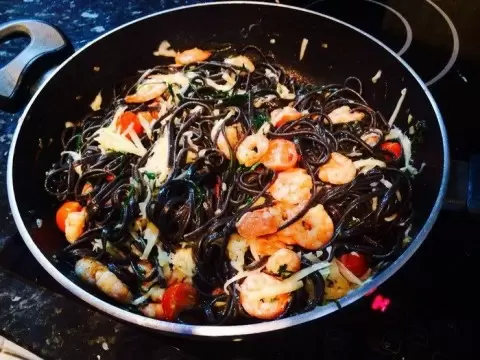 Этот деликатес имеет характерный черный цвет, который достигается за счет добавления чернил каракатицы. Такая паста не только выглядит эффектно, но и наполняет блюдо неповторимым морским вкусом. Некоторые даже считают, что черные спагетти способны добавить морских оттенков к любому прием пищи.