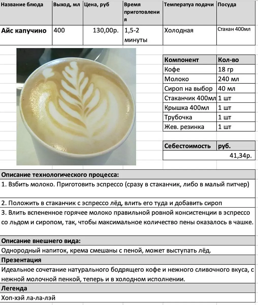 Для того чтобы получить точную себестоимость, необходимо проанализировать цену на эти ингредиенты. Например, если 1 кг кофейных зерен стоит 500 рублей, то стоимость 10 г составит 5 рублей. Аналогично рассчитываются и другие компоненты.