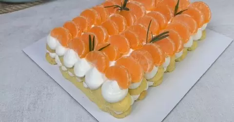 Вдохновляющий новогодний рецепт, который подарит вам не только радость, но и заботу о здоровье. Этот изысканный десерт порадует вас нежным кремом и хрустящими печеньями, пропитанными мандариновым сиропом.