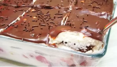 На завершающем этапе два вида шоколадной глазури: растопленные шоколад и сливки наносят на охлажденный трайфл, после чего десерт вновь убирается в холодильник на ночь для лучшего пропитывания. Перед подачей его можно дополнительно украсить ягодами.