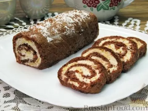 И, конечно, для сладкоежек предусмотрен шоколадный рулет с творожно-банановой начинкой, который готовится без муки и сахара. Нежный бисквит и сладость бананов превращают этот рулет в настоящий шедевр кулинарного искусства.