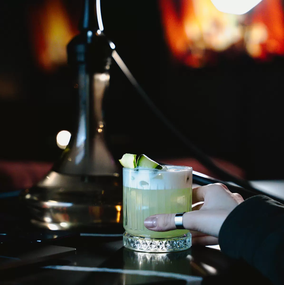 Кальян: цитрусово-зелёный; Коктейль: Garden Gin Sour; Блюдо: зелёный салат с авокадо на гриле.