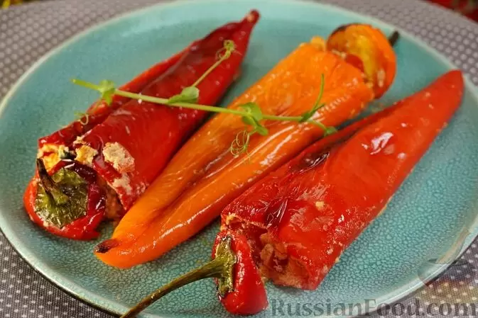 - Фаршированные перцы: Сладкие перцы, наполненные фетой и свежими овощами, оформленные ароматными травами — настоящий праздник для глаз и гурманов.