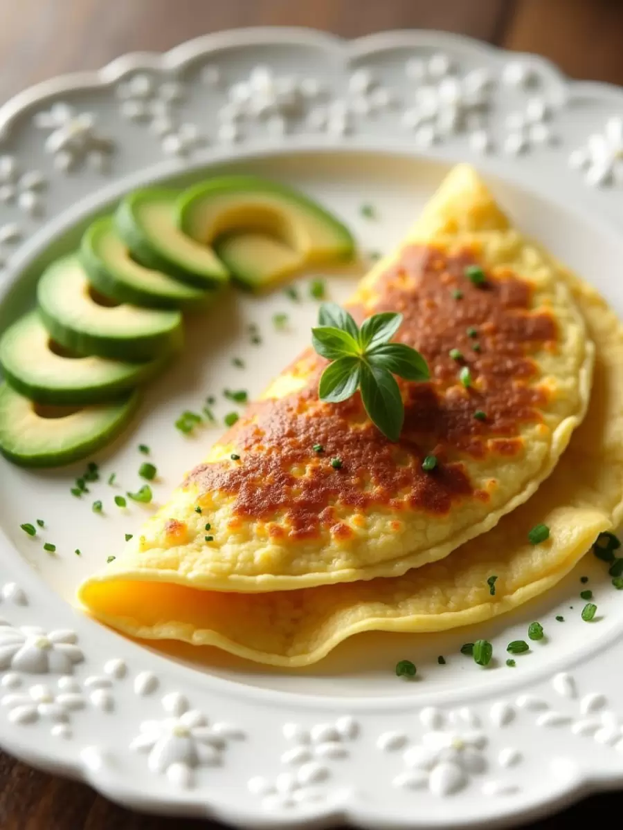Готовый омлет отлично сочетается с свежей зеленью, кусочком авокадо или цельнозерновым хлебом. Можно подавать его и просто так, наслаждаясь его нежным вкусом и полезными свойствами.