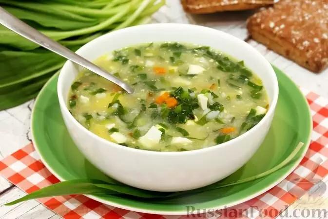 Суп с рисом, черемшой и яйцами — это сытное блюдо без мяса обладает ярким вкусом благодаря черемше, которая добавляет легкую чесночную нотку и приятный аромат. Обязательным ингредиентом являются вареные яйца, которые делают суп более питательным и насыщенным.