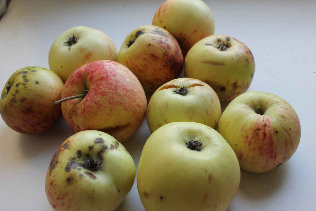 На фото представлены те самые яблочки из Хотьково. Несмотря на непрезентабельный вид, они полны аромата и натурального вкуса. Яблоки были тщательно промыты и только сердцевина с хвостиком убраны.