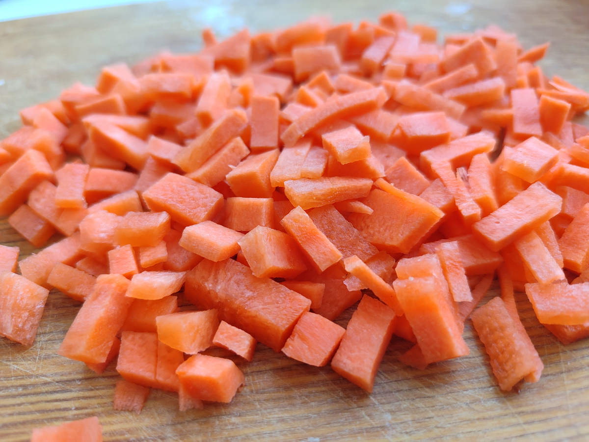 Ингредиенты: 120 г баклажана, 180 г кабачка, 100 г моркови, 70 г лука, 70 г помидора, 3 зубка чеснока, соль, растительное масло.