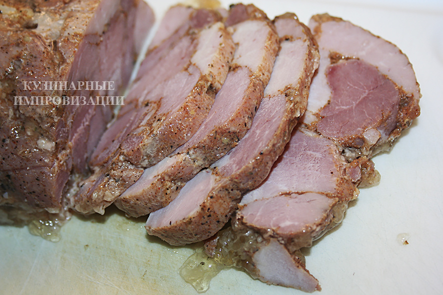 По истечении времени, ветчина станет готовой к употреблению. Она прекрасно смотрится и издает потрясающий аромат. Хранить домашнюю ветчину можно так же, как и другие мясные деликатесы — в герметичной упаковке или в замороженном виде, если возникла необходимость.