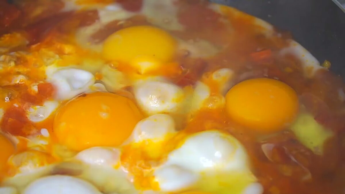 Как только овощи достигнут нужной консистенции, аккуратно разбиваем яйца прямо на овощную смесь. Это придаст блюду особый вкус и текстуру.