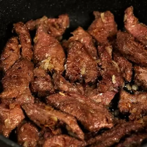 Лук, предварительно измельченный, необходимо обжарить на сковороде с растительным маслом. На умеренном огне довести до легкой золотистости, а после увеличить огонь и добавить печень. Обжаривать до появления румяной корочки, после чего снизить огонь практически до минимума и влить сметану. На этом этапе стоит добавить соль и перец по вкусу.
