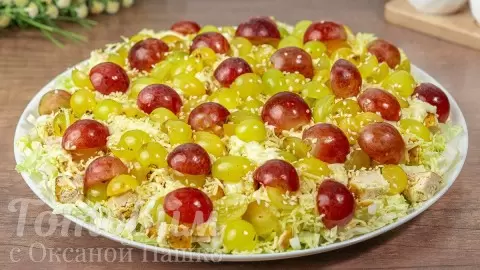 Этот невероятный салат с пекинской капустой, курицей и виноградом станет настоящей изюминкой любого праздничного мероприятия. Если вам нравится сочетание мяса с фруктами, этот рецепт точно порадует ваши вкусовые рецепторы. Хрустящая пекинская капуста в сочетании с нежным куриным филе, пикантным сыром и сладким виноградом создают великолепный ансамбль вкусов.