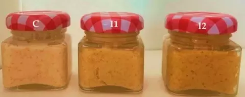 Исследование включало два соотношения морковного порошка (6% и 12%) в составе салата. Икра карпа, подсолнечное масло и лимонный сок образуют основу, а добавление морковного порошка придаёт салату характерную окраску и улучшает его вкус.