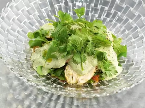 Салат из копченого цыпленка с уникальным соусом сациви завораживает своим неповторимым вкусом и ароматом. Это блюдо за считанные минуты украсит любой стол, сочетая в себе свежесть и насыщенность.