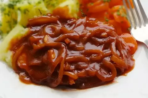Этот соус отлично подходит как для подливки к мясу, так и для заправки жареных колбас. Простота и универсальность - вот его главные преимущества. Приятного аппетита!