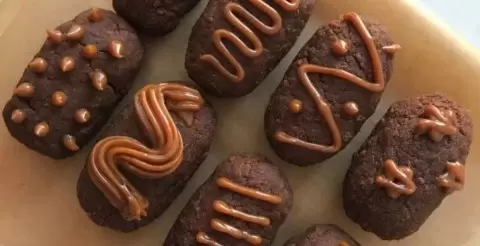 После этого пеките пирожные любой формы, по желанию обваляйте в кондитерской крошке или какао-порошке, а для декора используйте остатки крема, оформляя по своему вкусу. Приятного аппетита!